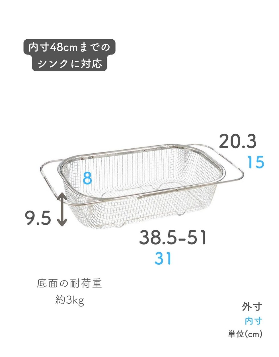 | 本体サイズ | 【深型シンク渡し】幅38.5-51×奥行20.3×高さ9.5cm 重量0.44kg |