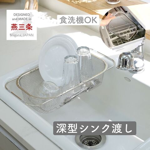 水切りかご 食洗機対応 ステンレス 深型シンク渡し 水切り 水切りカゴ コンパクト 水切りラック ザル ざる キッチン 収納 台所 シンプル すっきり暮らす 燕三条 日本製 ビーワーススタイル 【送料無料】