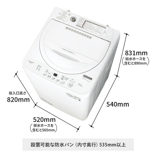 全自動洗濯機 5.5kg 縦型 洗濯機 ES-GE5J ホワイト 一人暮らし 小型 静音 節水 エコ 時短コース おしゃれ着 風乾燥 1人用 2人用 新生活 コンパクト タイマー付き シャープ SHARP 【送料無料】