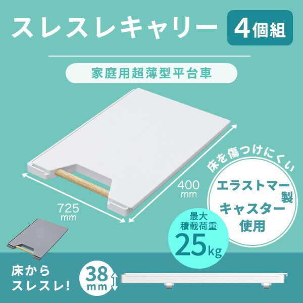 | 山善 YAMAZEN 縦にも横にも連結できる平台車 スレスレキャリー 4個組 超薄型 幅40 奥行27.5 高さ3.8cm 耐荷重25kg YSS-38*4 |