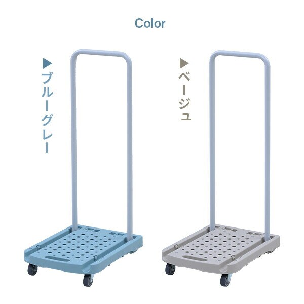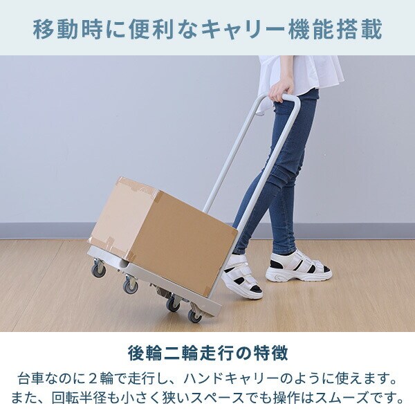 ●ハンドル部が台車本体に格納できるデザインで大きめの荷物も平台車として運搬が可能