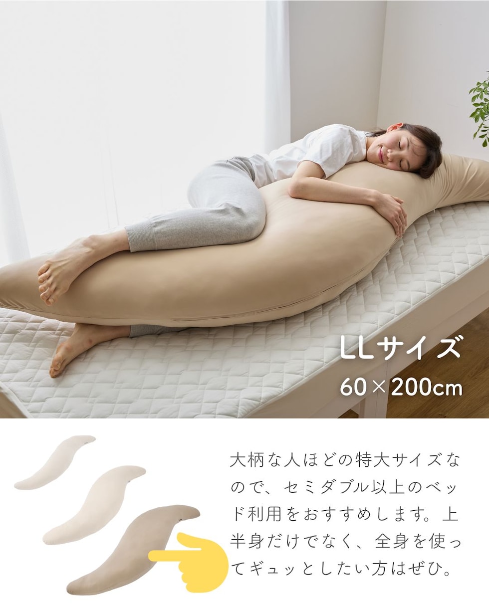| 商品説明 | ●※2025年4月21日より、生地をリニューアルしたモデルに変更します。 ●2025年度リニューアルした接触冷感抱き枕 ●カバーは洗濯機で洗濯可能、本体は手洗い可能 ●抱き枕、クッション、横向き寝など、いろいろな姿勢でご利用可能 ●特徴的なS型形状と、先細りしたデザインで、抱きやすいフォルム ●独自の構造で接触冷感性と持続性を実現した新しい素材を使用したカバー ●本体には滑りの良い中袋も付いているので、カバーの着脱もラクラク 【お手入れ】 ・本体は手洗い可能です。洗濯後は水を多く含むため干すのが大変ですが、形を整えて干して下さい。 ・カバーは洗濯ネットに入れて、弱水流にて単独で洗ってください。 ・本商品には、無蛍光洗剤をお使いください。 ・タンブル(乾燥機)乾燥はお避けください。 ・洗濯後は放置せず、すぐ形を整えて干してください。 |