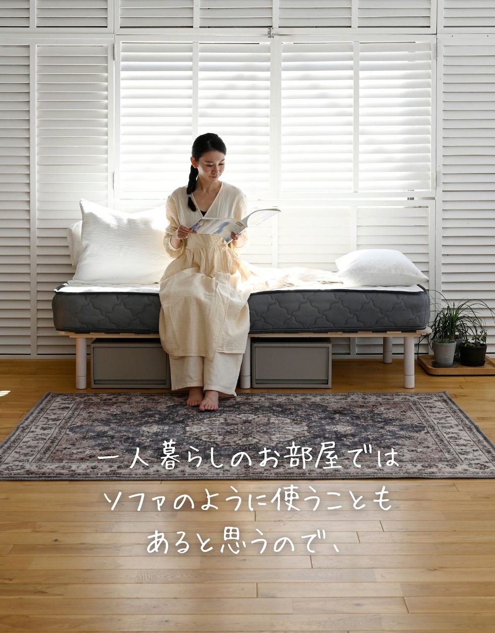 | 材質 | 表地: ポリエステル100% 中材: コイルスプリング、ウレタンフォーム、フェルト(ポリエステル) 裏地: 不織布 |