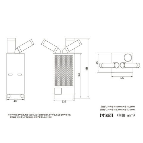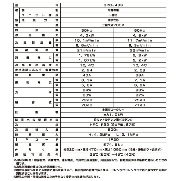 | 商品説明 | ●本製品はメーカーからの直送品です。 ご注文後、メーカーの在庫状況によっては在庫切れによりキャンセルとなる場合がございますので、あらかじめご了承ください。 ●本製品は個人宅への配送は行っておりません ※お届け先には法人名、施設名の確認ができる看板、表札が必要です ※ご注文の際はお届け先住所もしくはお届け先名に必ず「法人名・施設名・屋号」をご記入ください ●電源:三相200V 50/60Hz ●定格電流:(強)6.1/7.1A、(弱)5.8/6.9A ●消費電力:(強)1780/2300W、(弱)1670/2200W ●タンク容量:9L ●冷房能力:4.0kW/4.8kW ●冷媒封入量:600g ●自動首振り:あり ●圧縮機:全閉型ロータリー(定格出力1.0kW) ●騒音値:(強)72/75dB、(弱)70/71dB ※「日本冷凍空調工業会JRA4040規格」に基つ?いて測定した数値 ●環境に配慮した冷媒R32を採用 オゾン層破壊係数ゼロ、地球温暖化係数(GWP)675の環境に優しいエコ冷媒 ●保守性・信頼性の高い全閉式ファンモーター搭載 モーターコイルが密閉されており、チリやホコリ等の侵入を防ぎます ●ツインダクト式で2ヵ所に効率的に冷風を送ります ●首振りスイッチをオンにするとダクトが自動でスイング(左右に約75度) ●サーマルプロテクター(復帰式過熱保護装置)内蔵で、モーターを過負荷や異常電流から保護します ●付属品:冷風ダクト×2本、冷風ダクト用エルボ×2個、排熱ダクト1本、ドレンホース(1.5m)×1本 ●設置に関する注意事項 ・電源コードはついておりません 配線の長さに応じて、適切な太さのコードをご購入ください ・電源の接続には電気工事士が必要となりますので必ず電気工事士の有資格者、認定を受けた電気工事店にご相談ください ●配送に関する注意事項 ・本製品の配送は重量物であるため「車上渡し」となります 荷受人がトラックからの荷下ろし作業を行って頂く必要があります 製品によってはフォークリフトが必要な場合があります 荷受時には事前に人員の確保や搬入経路の確保をお願いします ※沖縄県、離島地域への配送はできません |