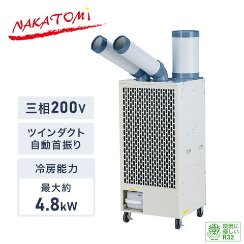 | ナカトミ NAKATOMI 【代引不可】【法人・施設限定】スポットエアコン ツインダクト 自動首振り キャスター付き 排熱ダクト付き 三相200V 冷媒R32 エコ冷媒 SPC-48S |