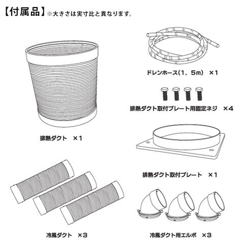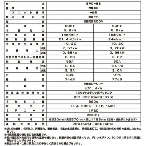 | 商品説明 | ●本製品はメーカーからの直送品です。 ご注文後、メーカーの在庫状況によっては在庫切れによりキャンセルとなる場合がございますので、あらかじめご了承ください。 ●本製品は個人宅への配送は行っておりません ※お届け先には法人名、施設名の確認ができる看板、表札が必要です ※ご注文の際はお届け先住所もしくはお届け先名に必ず「法人名・施設名・屋号」をご記入ください ●電源:三相200V 50/60Hz ●定格電流:(冷風)9.0/10.2A、(送風)2.3/3.0A ●消費電力:(冷風)2570/3280W、(送風)680/950W ●タンク容量:12L ●冷房能力:5.9kW/6.8kW ●冷媒封入量:880g ●自動首振り:無し ●圧縮機:全閉型ロータリー(定格出力1.4kW) ●騒音値:74/77dB ※「日本冷凍空調工業会JRA4040規格」に基づいて測定した数値 ●環境に配慮した冷媒R32を採用 オゾン層破壊係数ゼロ、地球温暖化係数(GWP)675の環境に優しいエコ冷媒 ●保守性・信頼性の高い全閉式ファンモーター搭載 モーターコイルが密閉されており、チリやホコリ等の侵入を防ぎます ●トリプルダクト式で3ヵ所に効率的に冷風を送ります ●サーマルプロテクター(復帰式過熱保護装置)内蔵で、モーターを過負荷や異常電流から保護します ●付属品:冷風ダクト×3本、冷風ダクト用エルボ×3個、排熱ダクト1本、ドレンホース(1.5m)×1本 ●設置に関する注意事項 ・電源コードはついておりません 配線の長さに応じて、適切な太さのコードをご購入ください ・電源の接続には電気工事士が必要となりますので必ず電気工事士の有資格者、認定を受けた電気工事店にご相談ください ●配送に関する注意事項 ・本製品の配送は重量物であるため「車上渡し」となります 荷受人がトラックからの荷下ろし作業を行って頂く必要があります 製品によってはフォークリフトが必要な場合があります 荷受時には事前に人員の確保や搬入経路の確保をお願いします ※沖縄県、離島地域への配送はできません |