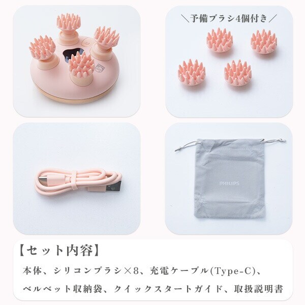 | フィリップス PHILIPS ヘッドスパ 電動頭皮ブラシ IP67防水 軽量 3段階速度調整 コードレス FTM3101H ピンク |