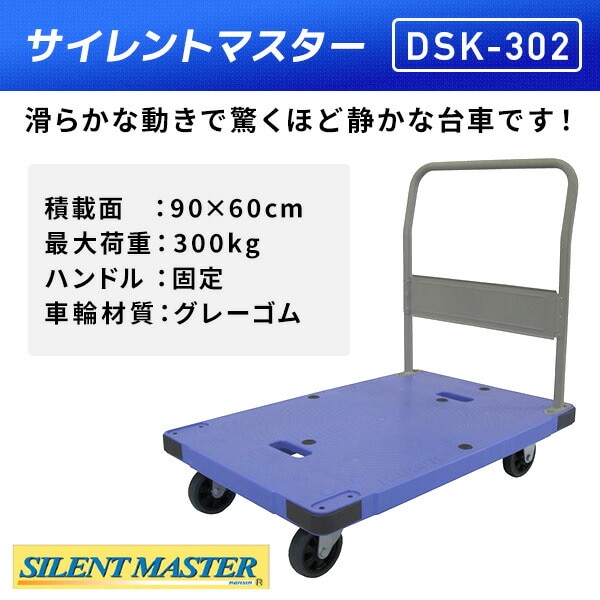 サイレントマスター 積載荷重300kg DSK-302 台車 樹脂運搬台車 固定ハンドル 軽量 静音 キャリーカート 配送業者 倉庫 ナンシン 【送料無料】