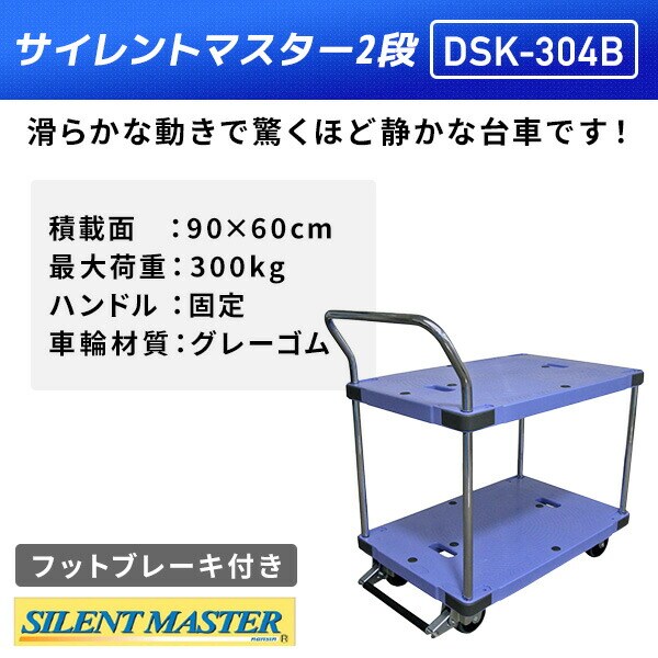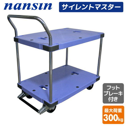 サイレントマスター 積載荷重300kg 2段タイプ フットブレーキ付き DSK-304B 台車 樹脂運搬台車 固定ハンドル 軽量 静音 キャリーカート 配送業者 倉庫 ナンシン 【送料無料】