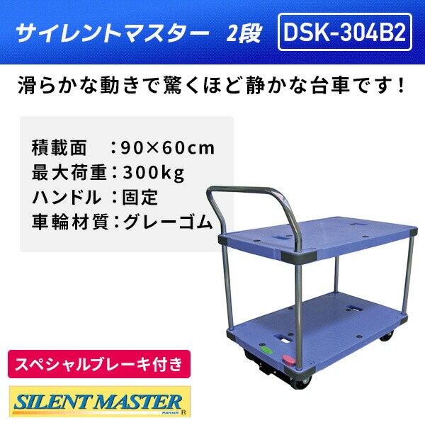サイレントマスター 積載荷重300kg 2段タイプ スペシャルブレーキ付き DSK-304B2 台車 樹脂運搬台車 固定ハンドル 軽量 静音 キャリーカート 配送業者 倉庫 ナンシン 【送料無料】