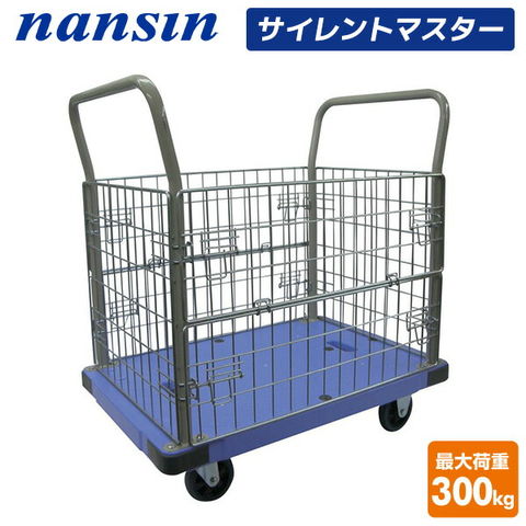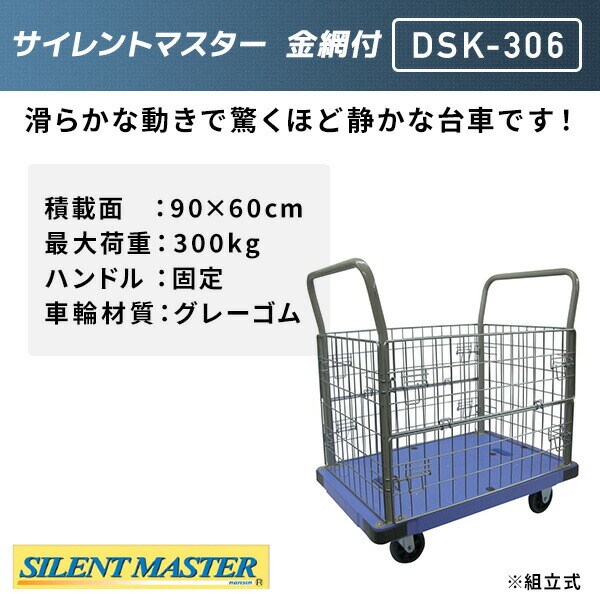 サイレントマスター 積載荷重300kg 金網タイプ DSK-306 台車 樹脂運搬台車 固定ハンドル 軽量 静音 キャリーカート 配送業者 倉庫 ナンシン 【送料無料】