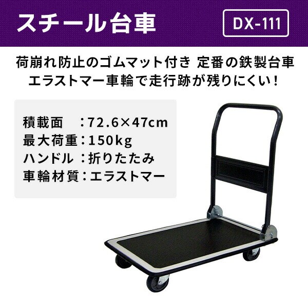 スチール台車 積載荷重150kg DX-111 ブラック 台車 金属台車 折りたたみハンドル 軽量 キャリーカート 配送業者 倉庫 ナンシン 【送料無料】