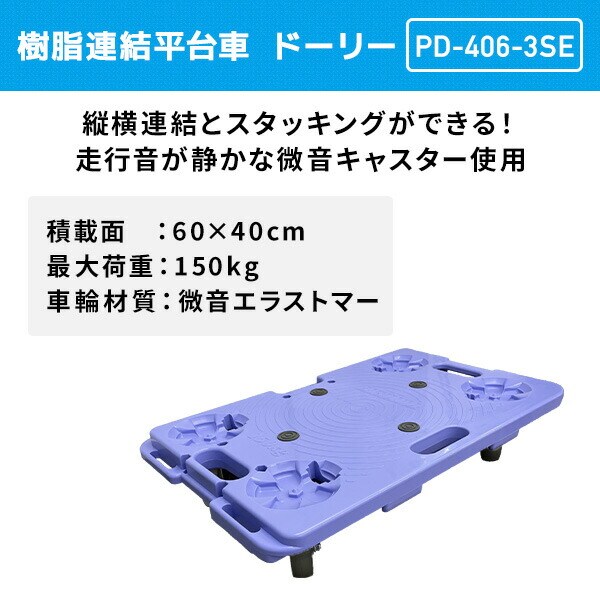 樹脂連結平台車 積載荷重150kg 微音 PD-406-3SE ドーリー 樹脂運搬台車 軽量 静音 キャリーカート 配送業者 倉庫 ドリー ナンシン 【送料無料】