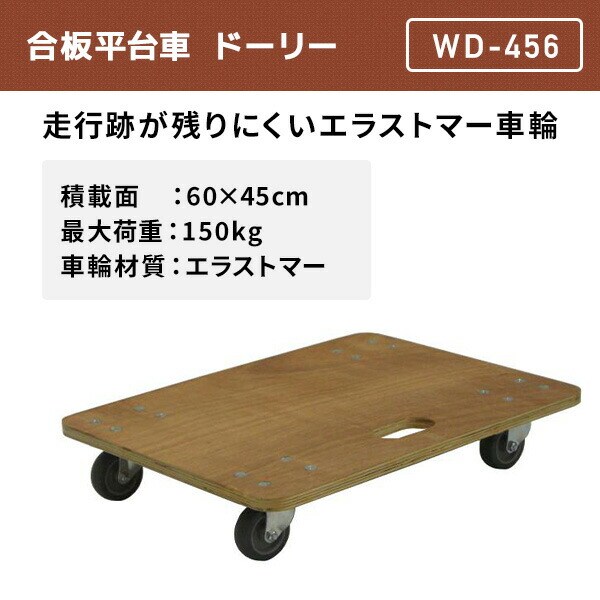 合板平台車 積載荷重150kg エラストマー車輪 WD-456 ドーリー 台車 平台車 木製 合板台車 運搬台車 キャリーカート 配送業者 倉庫 ドリー ナンシン 【送料無料】