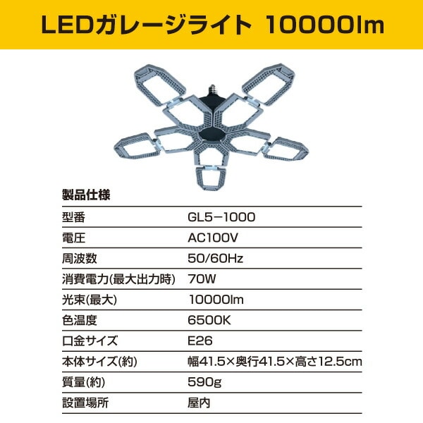 LED ガレージライト ペンダントライト 角度調節最大150度 70W 10000lm 6500K 口金サイズE26 屋内用 省エネ 取付簡単 GL5-1000 LEDライト 工事不要 車庫 倉庫 作業灯 山善|YAMAZEN 【送料無料】