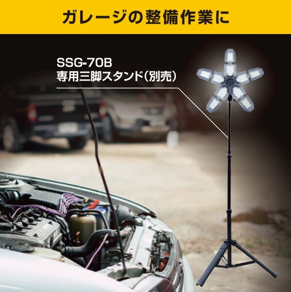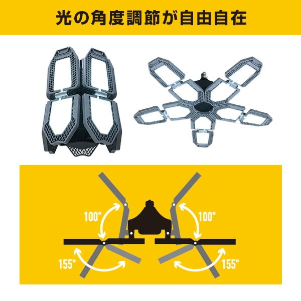 | 商品説明 | ●電圧:AC100V ●周波数:50/60Hz ●消費電力:70W ●光束(最大):10000lm ●色温度:6500K(2商品共通) ●口金(ソケット)サイズ:E26 ●設置場所:屋内 ※防水仕様ではないため屋外ではご使用頂けません。 ●光の角度調整が可能 ●夜間の屋内作業に ●ガレージの整備作業に |