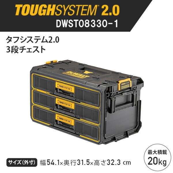 タフシステム2.0 3段チェスト 引き出し 最大積載20kg DWST08330-1 TOUGH SYSTEM ツールボックス 収納ケース 収納BOX 工具箱 道具箱 ケース DIY デウォルト DEWALT 【送料無料】