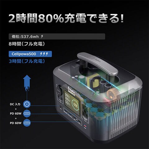 Bigblue リン酸鉄 ポータブル電源 Cellpowa500 537.6Wh 168000mAh 500W CP500 非常用バッテリー 停電 家庭用 小型 コンパクト 軽量 防災グッズ 防災用品 Bigblue Tech ビッグブルーテック 【送料無料】