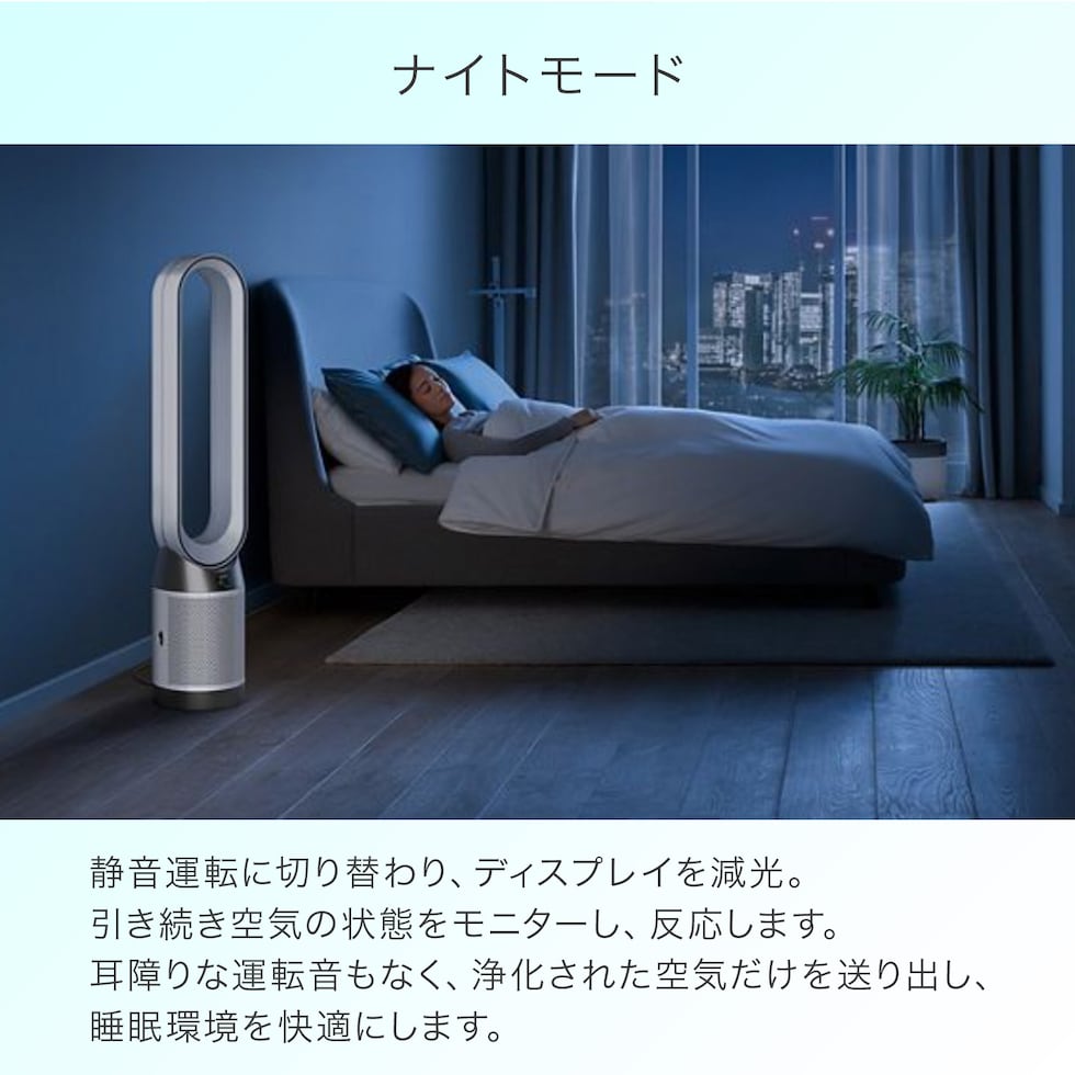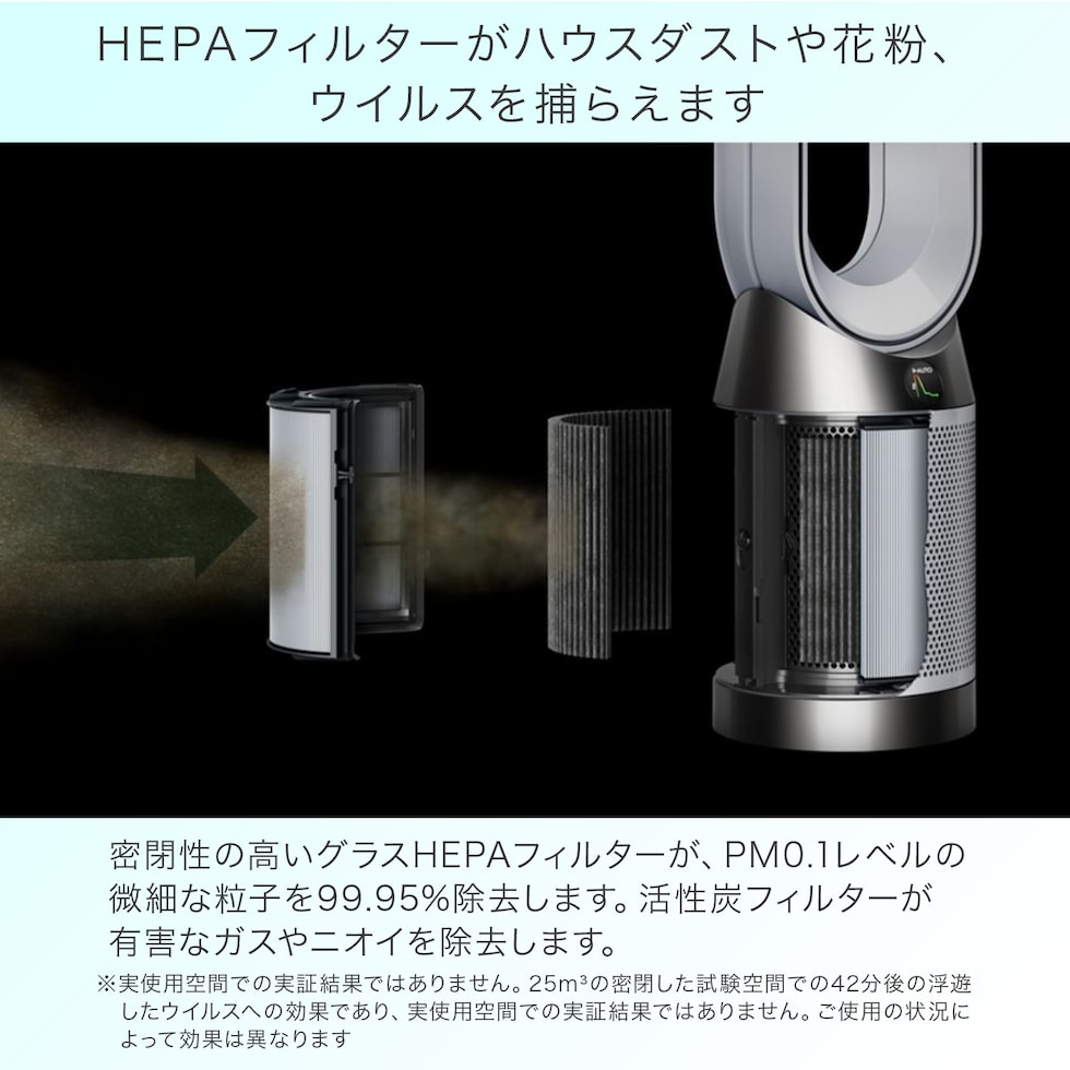 | 商品説明 | ●検知:空気中に浮遊する粒子状物質を自動で検知・分析し、リアルタイムでお知らせ ●空気清浄:密閉性の高いグラスHEPAフィルターが、PM0.1レベルの微細な粒子を99.95%除去。活性炭フィルターが有害なガスやニオイを除去 ※フィルター性能は欧州規格EN1822に準拠し第三者機関IBR-SGS(米国)が実施したPM0.1の粒子を対象としたフィルター試験結果。自社および第三者機関[CHEARI(中国)]が実施した酢酸、アセトアルデヒド、アンモニア[(一社)日本電機工業会規格(JEM1467)]、ホルムアルデヒド、ベンゼン[中国標準規格(GB/T18801)]、NO2[自社規格(DTM-003282)]の測定試験結果(括弧内は準拠した規格を示します)。実際の使用状況により除去率が異なります。前記以外の有害ガスについては確認していません ●密閉性:微細なPM 0.1までも99.95%閉じ込め、確実に空気清浄。密閉性の高い空気清浄システムにより、空気中から微細な粒子を捕らえ、製品内に閉じ込める ※欧州規格EN1822に準拠し、第三者機関SGS-IBR(米国)が2023年に実施した、0.1μm以下の粒子を対象に最大風量にて行ったフィルター性能試験結果。前記数値は、フィルターの性能試験に基づく性能であり、実機の性能とは異なります。また、空気中の有害物質のすべてを除去できるものではありません。PM0.1とは0.1μm以下の大きさの微小粒子状物質です。 ●循環:Air Multiplierテクノロジーと、350°首振り機能で、部屋全体に風を届ける ※自社規格TM-003711に基づく81m3の空間での空気清浄能力を測定した自社試験結果。 ●年間を通して使用できる:夏は浄化された風で涼しくする空気清浄ファンとして、冬は空気清浄機として使用可能 ●ナイトモード:静音運転に切り替え、LCDディスプレイを減光 ●安全への配慮:お手入れが大変なカバーや羽根がないのでお手入れも簡単 【搭載テクノロジー】 ●微粒子(ホコリ)センサー ●360°グラスHEPAフィルター ●活性炭フィルター ●Air Multiplie(エアマルチプライアー) テクノロジー 【モーター】ブラシレスDCモーター 【定格消費電力(W)】2/50(最小/最大首振りなし) 【風量調整】10段階 【空気清浄適用床面積】11畳30分/33畳60分【首振り機能】45°/90°/180°/350°【タイマー】1・2・4・8時間 【コードの長さ】1.8m |
