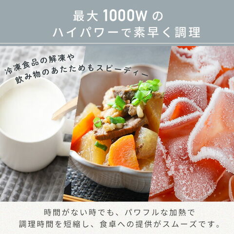 | 商品説明 | ●電源:AC100V(50/60Hz) ●庫内有効寸法:幅31.5×奥行35.5×高さ20.6cm ●電源コード長さ:約1.5m ●定格消費電力:1450W ●定格高周波出力:1000W ●発振周波数:2450MHz ●電熱装置の定格消費電力:1360W ●電子レンジ機能の年間消費電力量:56.5kWh/年 ●オーブン機能の年間消費電力量:12.4kWh/年 ●年間待機時消費電力量:0.0kWh/年 ●年間消費電力量:68.9kWh/年 ●付属品:角皿 ●自動メニュー:20種類搭載 ●赤外線センサー搭載 ●メーカー保証:1年間 |