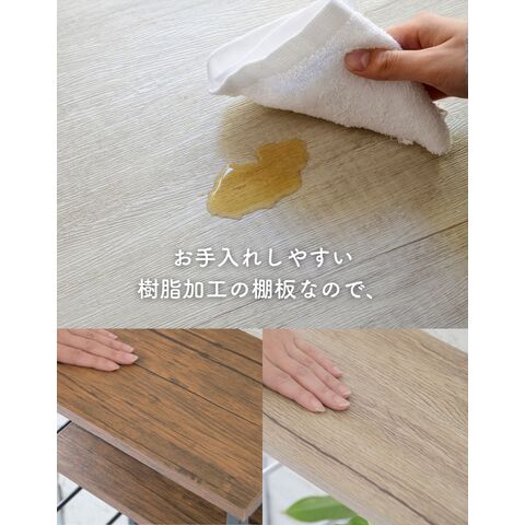 | 商品説明 | ●奥行き20cmで邪魔にならない、薄型のテーブル ●玄関、ソファ裏など狭い場所で使いやすい ●中の2枚の棚は高さを変えらて、置くものに合わせて調整可能 ●天板は木目調の樹脂加工でぬれたり汚れたりしてもお掃除カンタン ●アジャスター付きでガタツキを緩和(どの色でもアジャスターは黒色) ●背面クロスバー付きでぐらつきなくしっかり頑丈 ●天板サイズ:幅30 奥行き20cm ●棚板サイズ:幅26 奥行き15cm ●最上段時: 内寸高さ11.5cm、床から棚上まで67cmm ●最下段時: 内寸高さ15cm、床から棚上まで16.5cm ●棚板間内寸: 1段階で約11cm ●耐荷重: 天板5kg、棚板3kg |