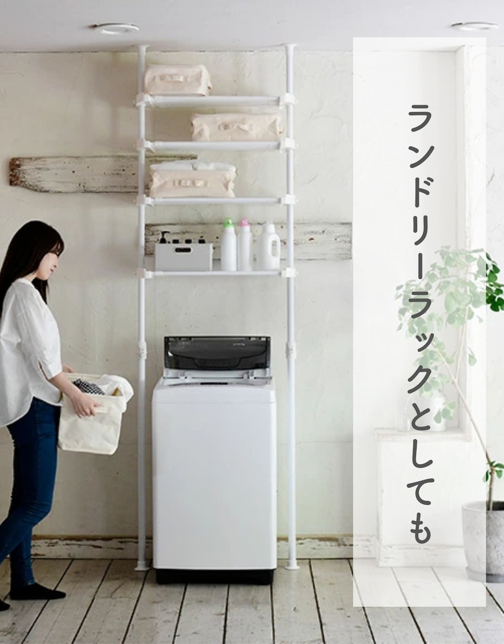 突っ張り 棚 ラック 伸縮 4段 工事不要 幅広 幅71-112 奥行32 高さ200-280cm 突っ張りラック ランドリーラック 壁面収納 洗面所 収納 棚 キッチン 賃貸 2m 山善 YAMAZEN 【送料無料】