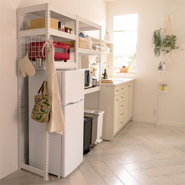 メタル&ウッドラック 3段 幅62 奥行き44 高さ182cm ごみ箱 ゴミ箱 収納 冷蔵庫 冷蔵庫上ラック ラック 棚 ドリームウェア 【送料無料】