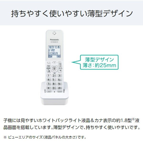 | 本体サイズ | 親機:幅29.6×奥行19.1×高さ8.6cm(受話器、突起部除く)/幅29.6×奥行24×高さ25.6cm(記録紙トレーオープン時、受話器、突起部除く) 重量2.4kg 子機:幅4.9×奥行2.5×高さ17.3cm 重量140g 充電台:幅7.3×奥行9×高さ4.7cm 重量155g |