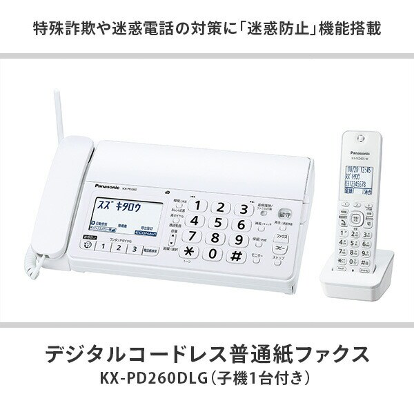 デジタル コードレス 普通紙 ファクス 子機1台付き KX-PD260DLG 固定電話機 通話機 迷惑電話 通話 録音 防犯 防犯対策 詐欺対策 子機 パナソニック Panasonic 【送料無料】