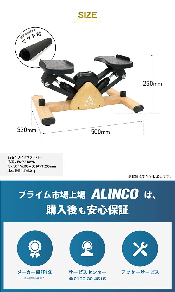 1年保証 サイドステッパー 油圧 シリンダー メーター表示 保護マット付き FAY524 ステッパー 有酸素運動 ダイエット 健康器具 足踏み 静音 フィットネス 室内運動 踏み台昇降 アルインコ ALINCO 【送料無料】