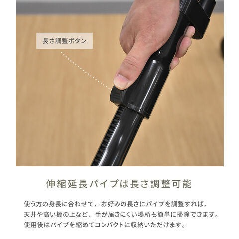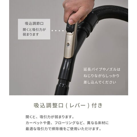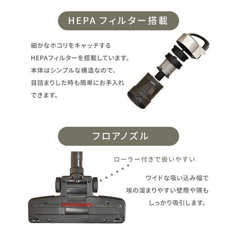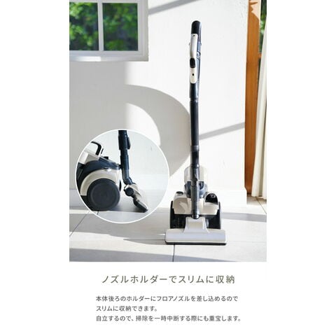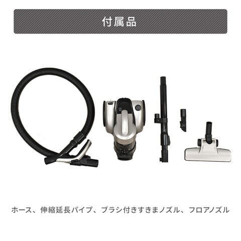 | 本体サイズ | 幅22.4×奥行32.2×高さ30.0cm 重量約3.0kg(本体のみ)/約4.3kg(フロアノズル、伸縮延長パイプ、ホース含む) |