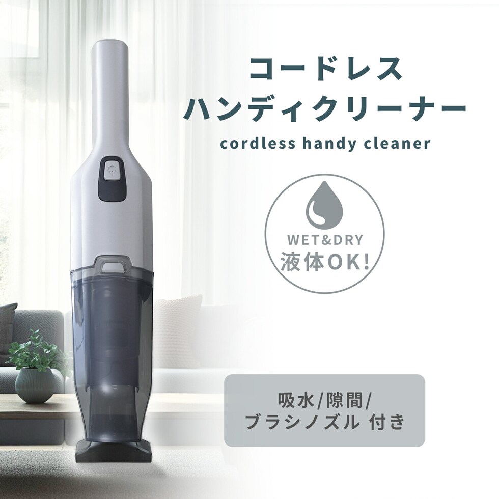 ハンディクリーナー 乾湿両用 吸引力 車 コードレス 強力 吸水ノズル ブラシノズル 隙間ノズル 付属 ZHK-WL10 充電式 紙パック不要 掃除機 ハンドクリーナー 車載 車載用 車用 卓上 コンパクト 軽量 小型 山善 YAMAZEN 【送料無料】