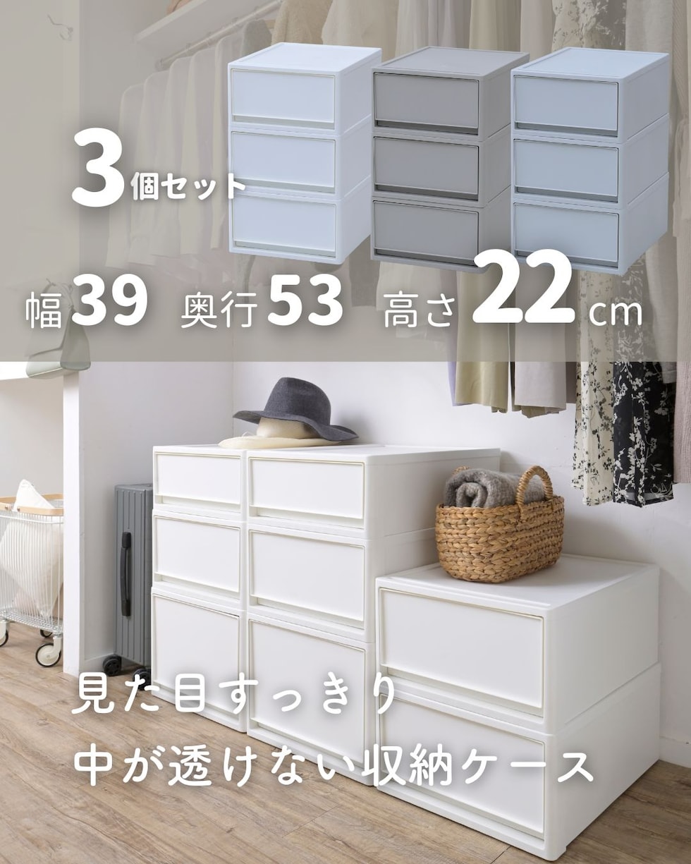 3個組 M 中が透けない 収納ケース 引き出し 奥行き53 収納ボックス 幅39 奥行53 高さ22 cm 衣装ケース 押入れ収納 押入れ クローゼット収納 クローゼット WIC ポリプロピレン プラスチック 日本製 【送料無料】