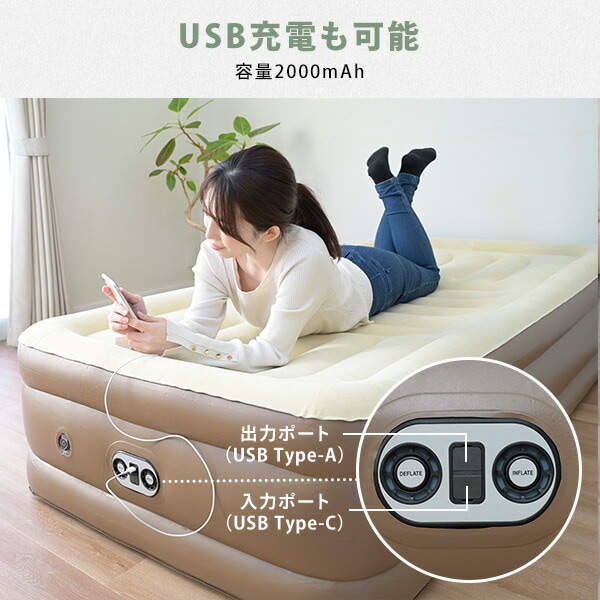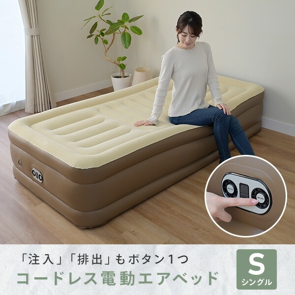 コードレスポンプ内蔵 電動エアベッド 極厚 シングル 注入・排出両方できる