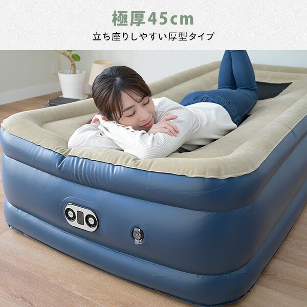 コードレスポンプ内蔵 電動エアベッド 極厚 シングル メッシュ 注入・排出両方できる