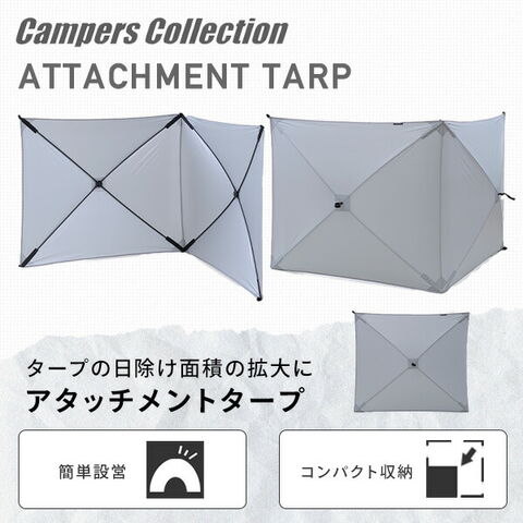 傘みたいに広げるだけ アタッチメントタープ シルバーコーティング AT-2 カーサイドタープ 日除け 日よけ アウトドア キャンプ テント ワンタッチテント 山善 YAMAZEN キャンパーズコレクション 【送料無料】