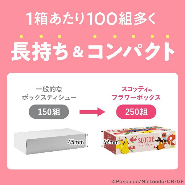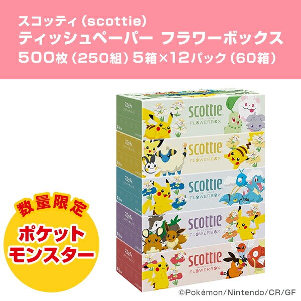 スコッティ ティッシュペーパー フラワーボックス 500枚(250組) 数量限定 ポケモン仕様 5箱×12パック(60箱) scottie ティッシュ ティシュー 大容量 長持ち コンパクト 日本製 ポケットモンスター 限定パッケージ 日本製紙クレシア 【送料無料】
