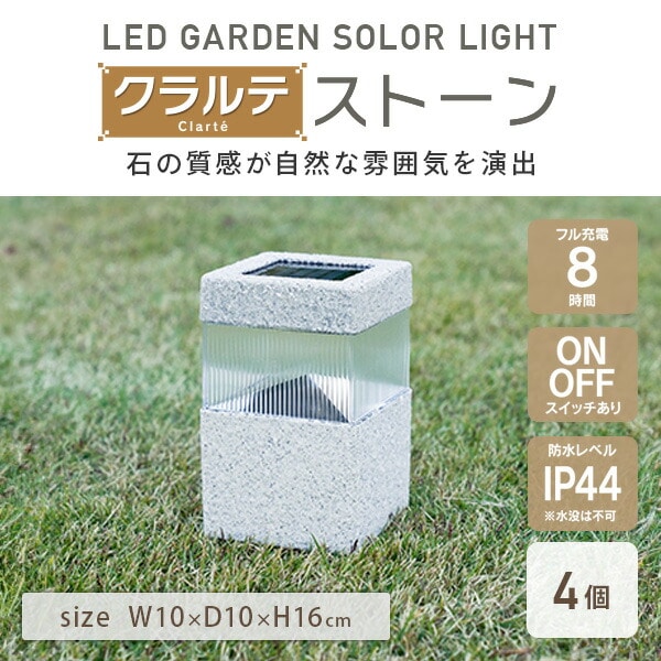 LEDソーラーライト クラルテ ストーン ガーデンライト 4個セット WCL-1300011(GD)*4 ガーデンソーラーライト ガーデンライト LEDライト 屋外 防水 電気代不要 おしゃれ 山善 YAMAZEN ガーデンマスター 【送料無料】