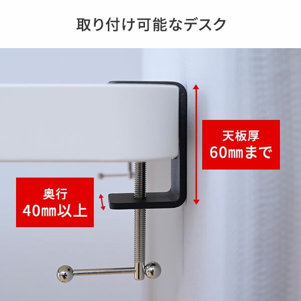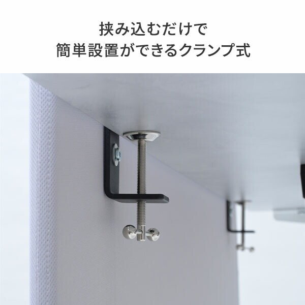 | 商品説明 | ●昇降デスクやパソコンデスク、学習机などで使えるデスクトップパネル ●挟み込むだけで簡単設置ができるクランプ式 ●取り付け可能なデスク ・天板厚:60mmまで ・奥行40mm以上 ●パネルの高さを2段階で調節可能(30cm、50cm) ●布カバーは取り外して洗濯可能 ●同シリーズの幅の異なるパネルを組み合わせてブース空間を作ることができます |
