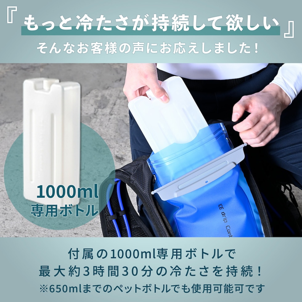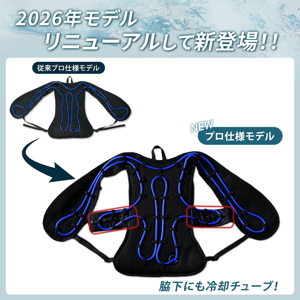 | 商品説明 | ●冷水で直接、体を冷やす水冷ベスト(バッテリーは別売となります) ●付属の1000ml専用ボトルで冷たさ持続UP ●付属の1000ml専用ボトルを使用すれば、ハーネスの下でも着用可能に(※一部例外がございます) ●コンパクトで上から防護服やユニフォームが着られます ●ファン付ウェアと違ってふくらまず、静かなファンレス ●保冷バッグの内側は三層構造による抜群の保冷力 ●付属の1000ml専用ボトルで最大約3時間30分の冷たさ持続 ※当社調べ(使用環境36度 湿度70% チューブ表面温度26度以下の時間) ※使用環境や体温により異なります ・使用する水はたったの200ml(冷水がオススメ) ・容量650mlまでのペットボトルでも対応可能 ●市販のモバイルバッテリーが使用可能に(5V2.0?3.0A) ※相性の問題で一部使用不可能な場合もございます。 ※バッテリー稼働から20秒程で電源オフになる仕様のバッテリーは使えません。 ●バッテリーは前面収納で操作もしやすい ・連続運転:約20時間、ミドル運転:約48時間、ロング運転:約48時間以上 ・運転モード:連続運転、ミドル運転:20秒稼働後60秒停止、ロング運転:20秒稼働後80秒停止 ・充電時間 ・付属充電ケーブル+USB ACアダプタ(5V2A出力)約3時間30分 ・付属充電ケーブル+USB ACアダプタ(5V1A出力)約5時間 ・充電寿命目安:最長500回程度 ●付属品 ・1000ml専用ボトルx1 ※ACアダプタは付属しておりません ※2026年2月よりポンプの仕様変更により冷却時間に変更があります。リモコン操作部にも仕様変更がございます。 |