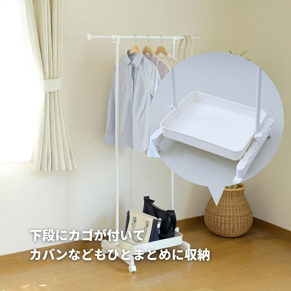 | 山善 YAMAZEN ハンガーラック 耳伸び カゴ付き キャスター付き |