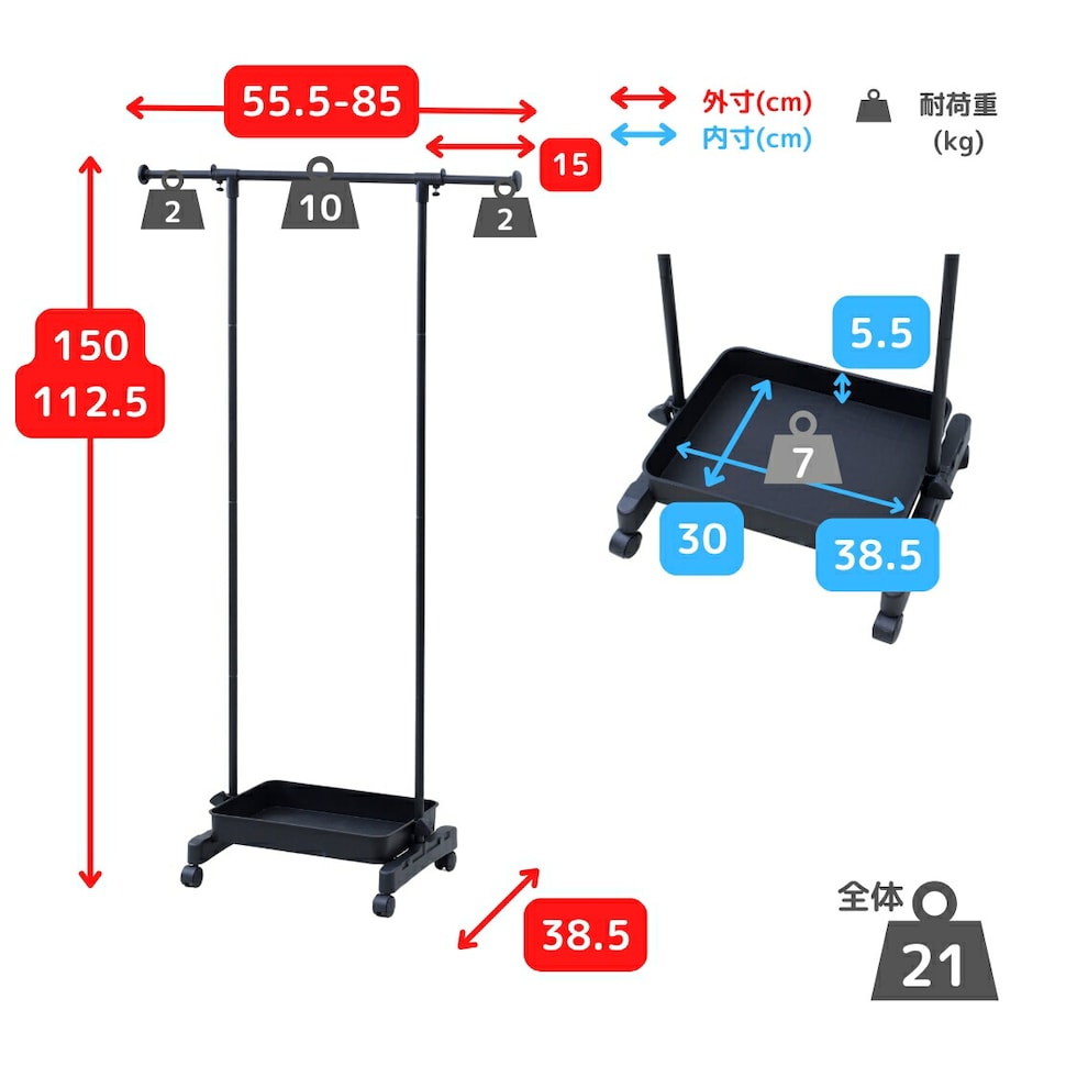 | 本体サイズ | 幅55.5-85.5×奥行38.5×高さ150/112.5cm 重量5kg |
