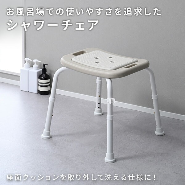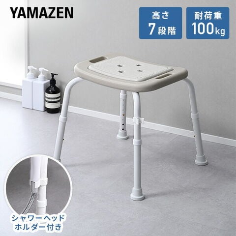 YAMAZEN ヤマゼン 山善 通販 シャワーチェア シャワーチェアー シャワーベンチ バスチェア 風呂椅子 風呂イス 風呂いす 椅子 浴室 介護 介護用 介護用品 入浴介護 入浴介助用品 立ち上がり補助 高さ調節 7段階 耐荷重100kg 背なし 滑り止め付き シャワーヘッドホルダー付き 座面取り外し 丸洗い アルミ製 おしゃれ グレージュ S5G49 |