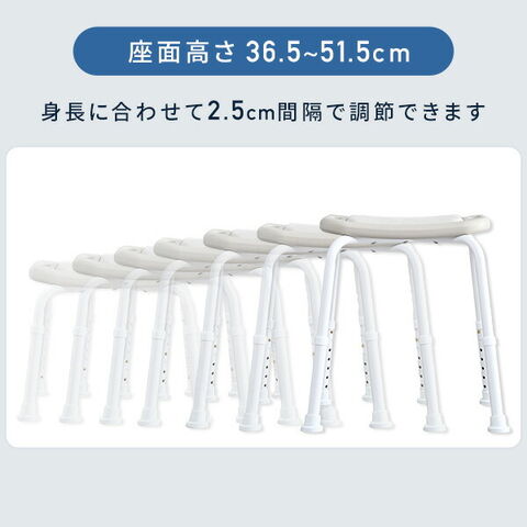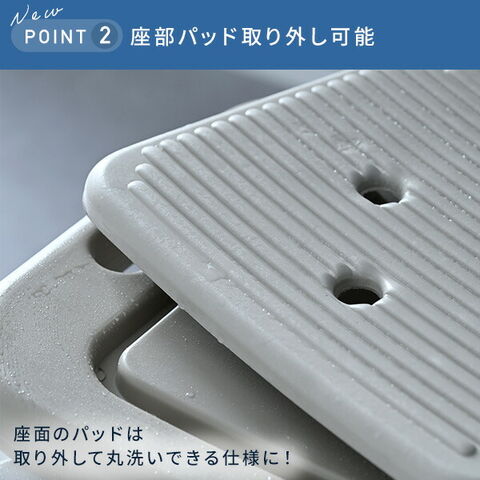 | 商品説明 | ●使いやすさを追求した便利なシャワーチェア ●使う人に合わせて高さ7段階調節可能 ●座面高さ:36.5-51.5cm ●座部には使い心地のよいクッションパッド付き ●パッドは取り外して丸洗い可能 ●立ち上がり時に便利な取っ手付き ●持ち運びしやすい軽量なアルミフレーム採用 ●一時置きにも便利なシャワーヘッドホルダー付き ●脚部の先端には滑りにくいゴムキャップ付き ●使用者体重:最大100kg ●家庭の浴室にも馴染むおしゃれなカラー |