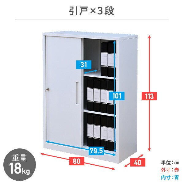 | 本体サイズ | 幅80×奥行40×高さ113cm 重量18kg 内寸法:幅79.5×奥行31×高さ101cm |