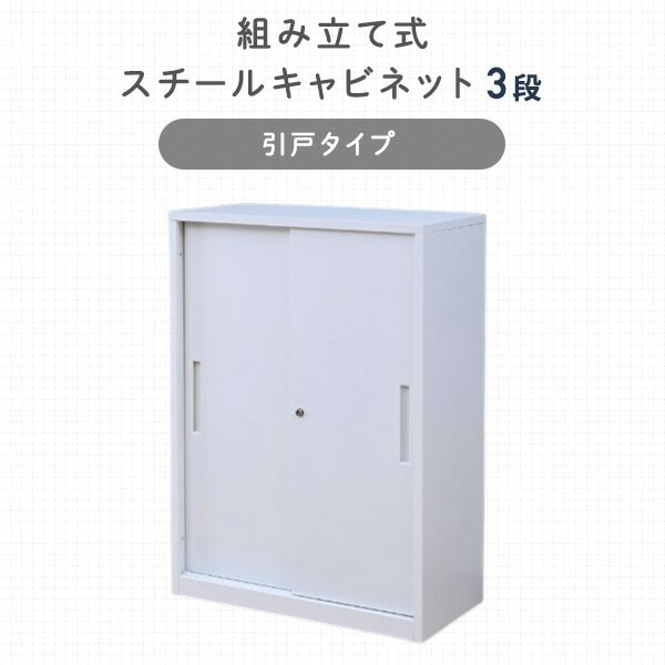 スチールキャビネット 3段 引戸 CSC-SL3(WH) ホワイト スチール書庫 スチールロッカー オフィス収納 オフィス家具 山善 YAMAZEN 【送料無料】
