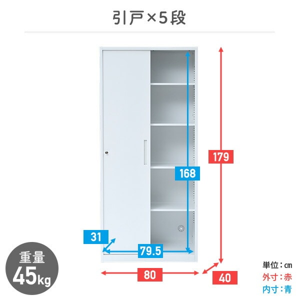 | 本体サイズ | 幅80×奥行40×高さ179cm 重量45kg 内寸法:幅79.5×奥行31×高さ168cm |