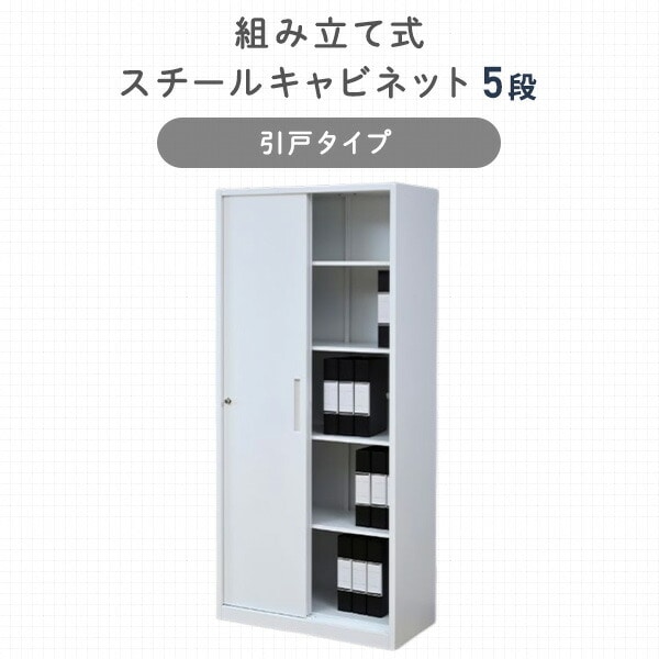 スチールキャビネット 5段 引戸 CSC-SL5(WH) ホワイト スチール書庫 スチールロッカー オフィス収納 オフィス家具 山善 YAMAZEN 【送料無料】