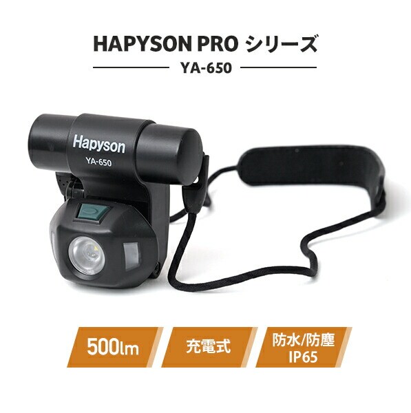 | Hapyson ハピソン HAPYSON PROシリーズ 充電式チェストライト 500lm 2600mAh 防水 防塵 IP65 充電インジケーター付き YA-650 |