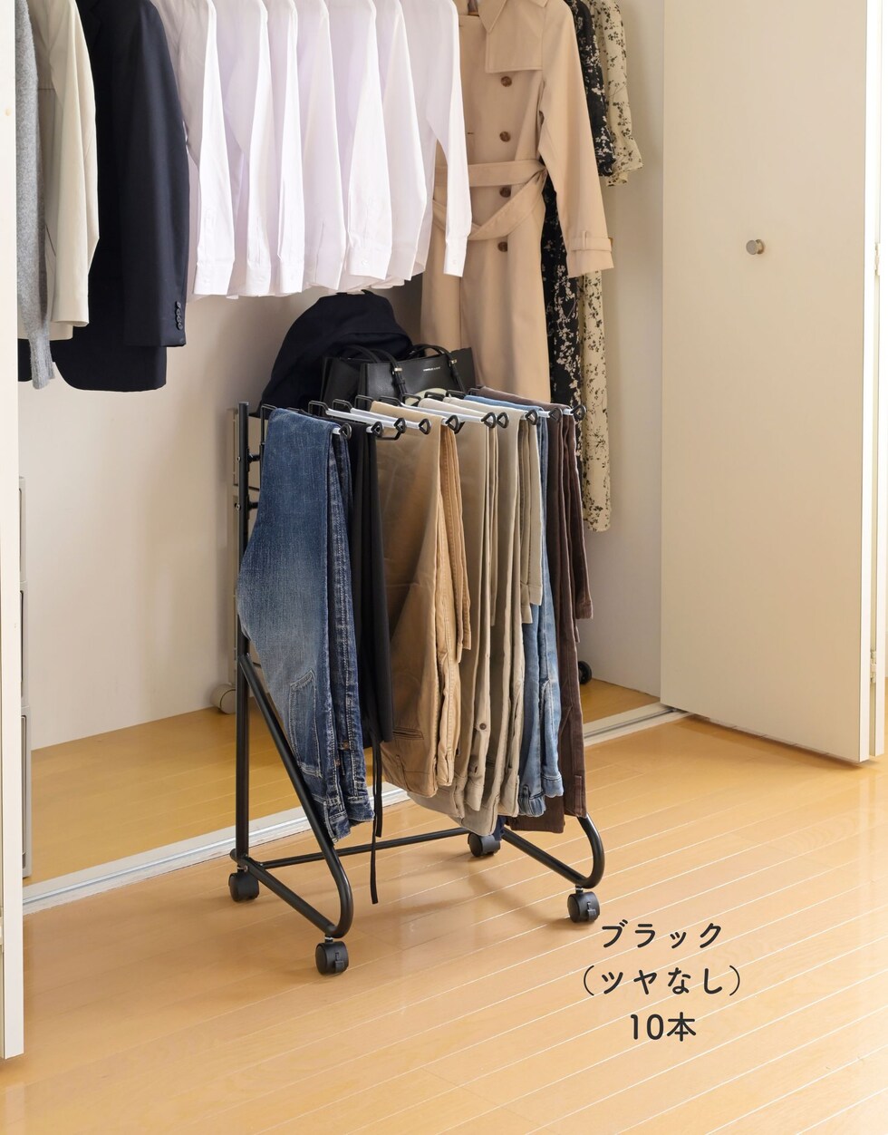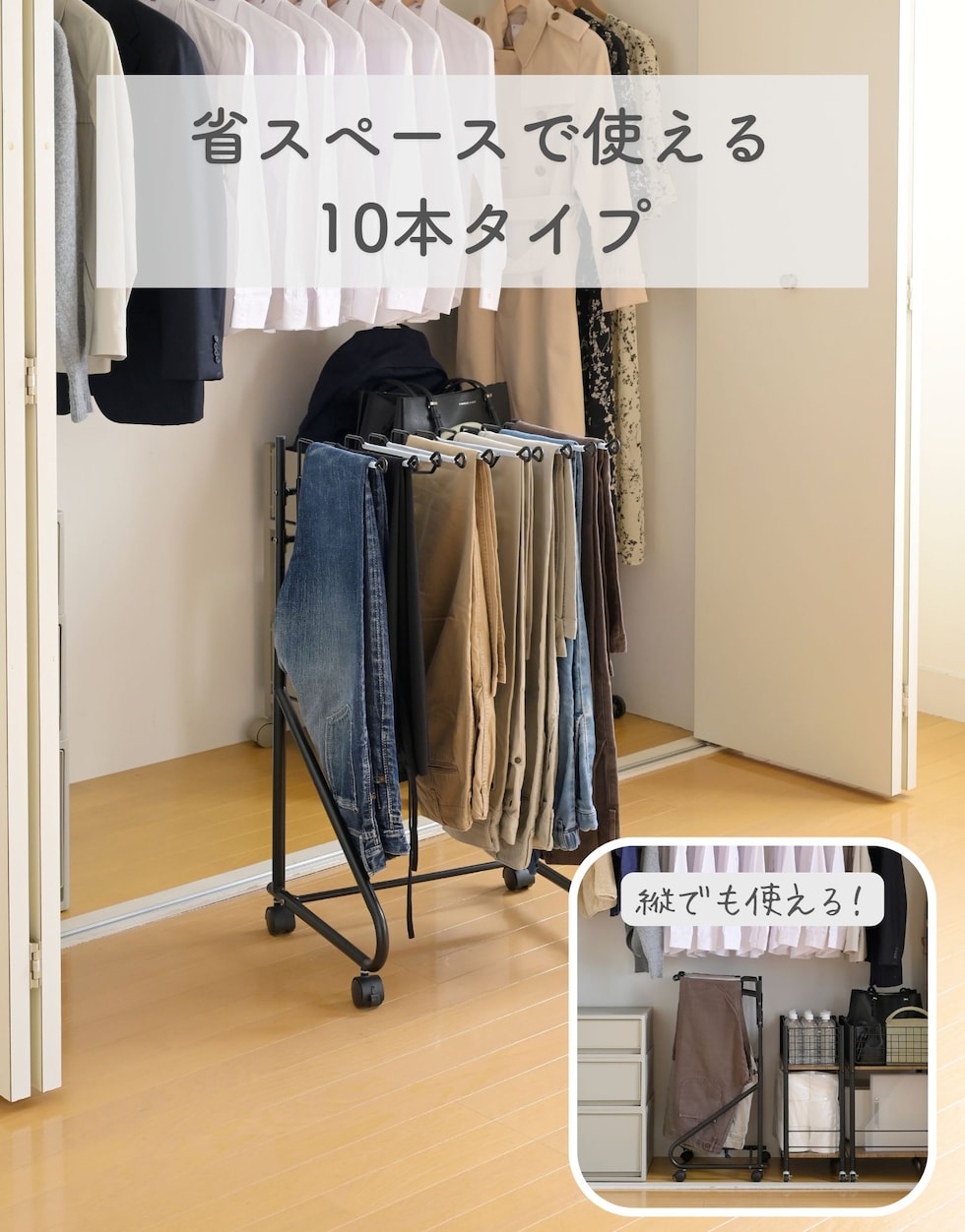 スラックスハンガー 10本掛け パンツハンガー クローゼット収納 押入れ収納 ズボンハンガー パンツラック 収納 キャスター付き ウォークイン クローゼット スリム 大容量 YAMAZEN 山善 【送料無料】